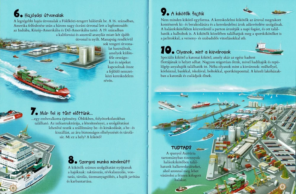 Bontsd ki a tengeri kalandok világát a „101 dolog, amit jó, ha tudsz a hajókról és a kikötőkről” című könyvvel! A kötet könnyed, ismeretterjesztő stílusban, érdekfeszítő tényeken keresztül mutatja be, hogyan épülnek a hajók, miként működnek a kikötők, és milyen mérföldkövek formálták a vízi közlekedést a vikingektől a modern óriásjáratokig. Strapabíró, színes borítója és látványos illusztrációi segítenek, hogy az olvasó képzeletben felhúzza a horgonyt, és elinduljon egy tudással teli felfedezőútra.