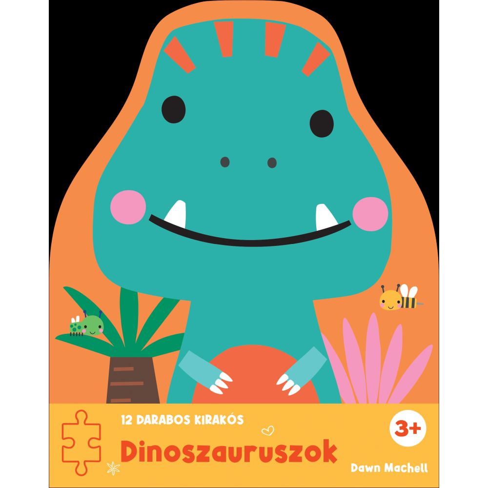 • 1 db keménykarton puzzle-könyv, benne 12 darabos dinoszauruszos kirakó