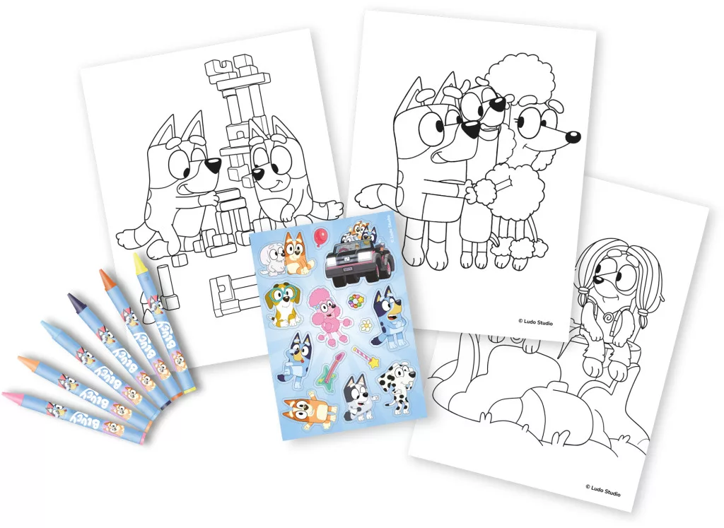 Bluey Színező  27x21 cm 6 Darab Zsírkrétával 1 Ív Matricával