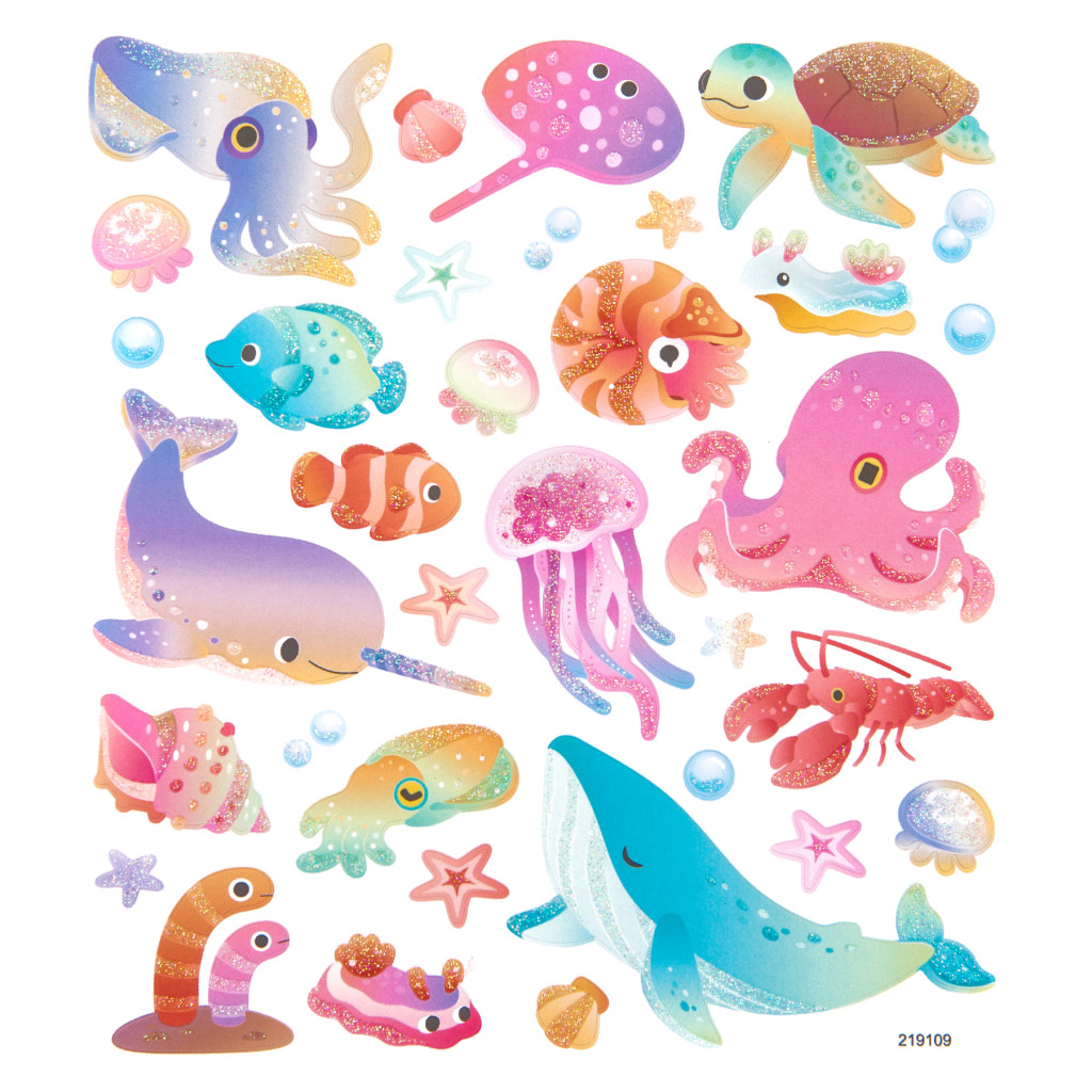 Ezek a színes papírmatricák tengeri állatokkal inspirálják a gyermekek fantáziáját, és arra ösztönzik őket, hogy fedezzék fel a víz világát.