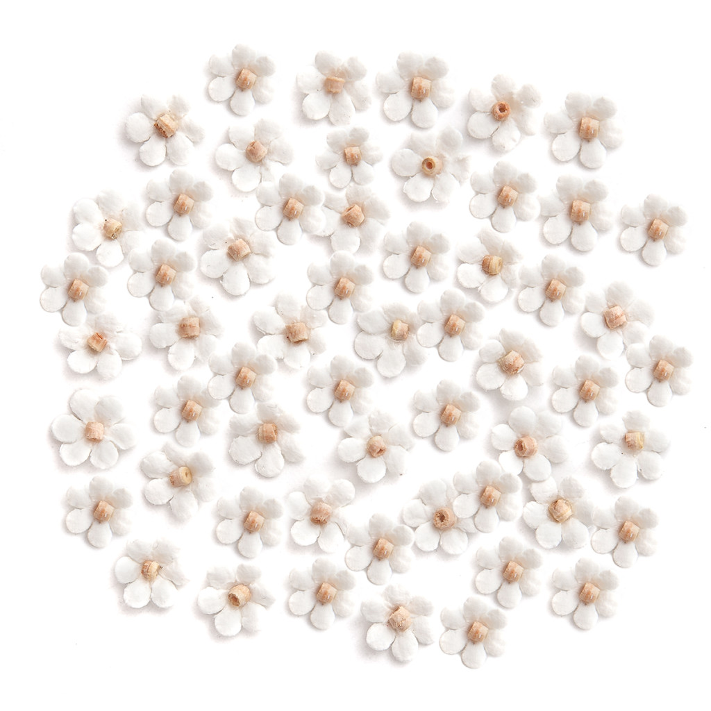 Az apró, mindössze 1 cm átmérőjű DP Craft papírvirágok finom, kézzel formázott díszítőelemek, amelyekkel pillanatok alatt varázsolhatsz romantikus, természetközeli hangulatot bármilyen kreatív projektbe. A hófehér, savmentes papírból készült szirmok közepét natúr árnyalatú papírporzó emeli ki, így a virágok egyszerre elegánsak és játékosak. Tökéletes választás scrapbook oldalak, képeslapok, ajándékdobozok, esküvői meghívók vagy asztaldekoráció finom részleteinek megalkotásához – engedd, hogy ezek a miniatűr virágok inspirálják alkotókedvedet!