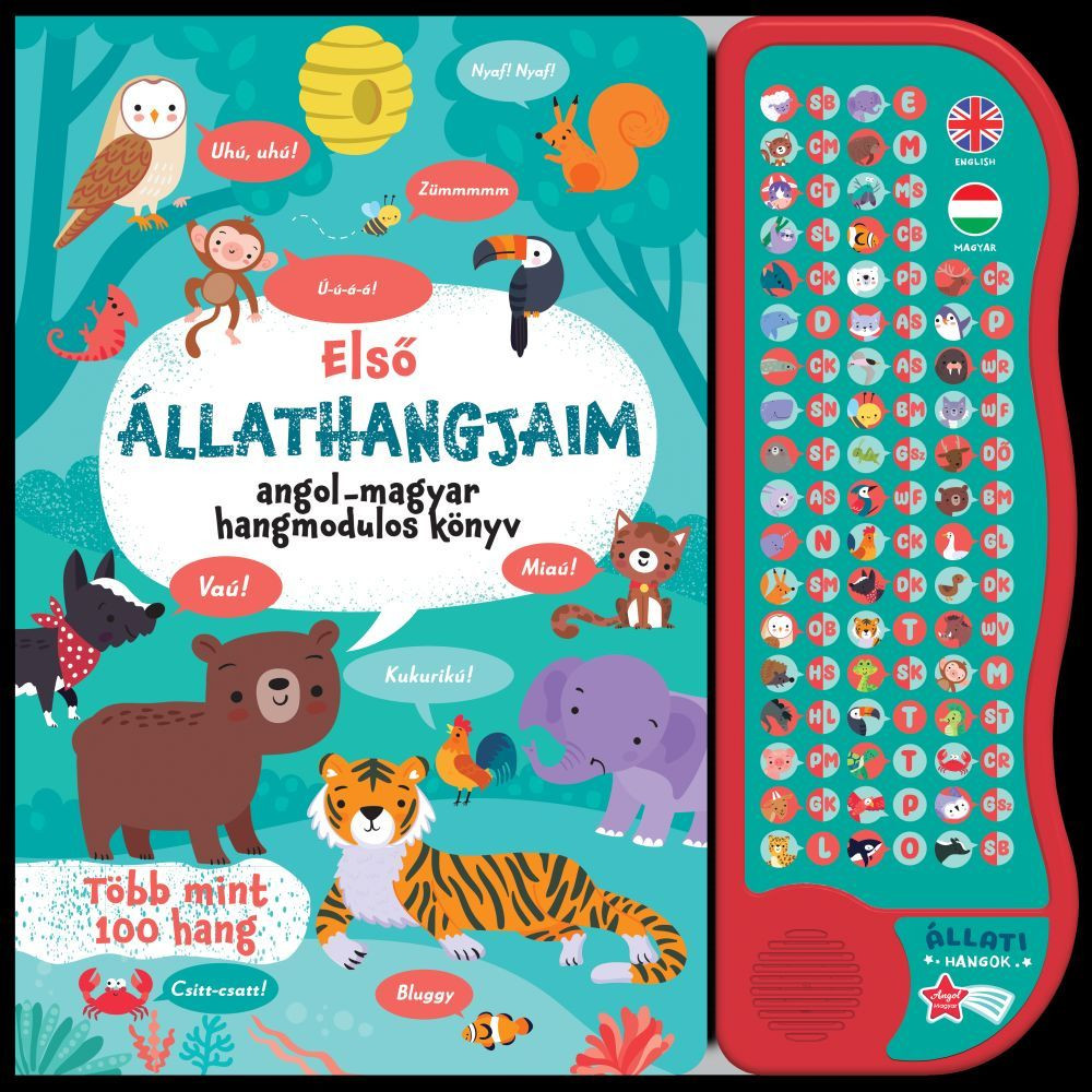 Az Első állathangjaim angol–magyar hangmodulos könyv egy strapabíró, kemény táblás lapozó, amely közel 50 eredeti állathang segítségével vezet be a gyerekeknek a házi, vad és egzotikus állatok világába. A beépített elektronikus panel minden gombnyomásra lejátsza az állat hangját, majd az állat nevét magyarul és angolul is felmondja, így a kicsik játszva bővíthetik szókincsüket. A vastag karton oldalak és a vidám illusztrációk hosszú ideig bírják a mindennapos felfedezést, miközben ösztönzik a nyelvi és hallási fejlődést.