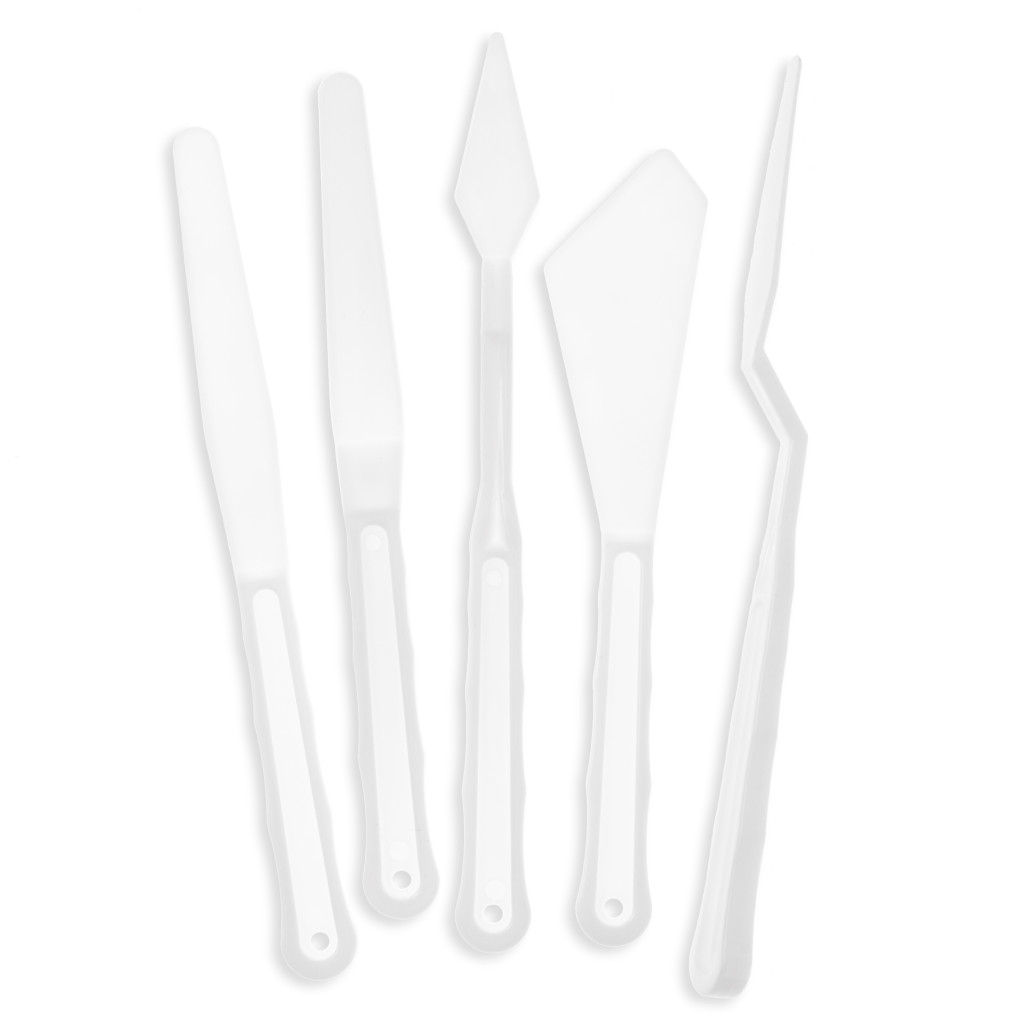 A DP Craft műanyag festőkés készlet öt darab, fehér, rugalmas spatulát kínál 16–18,5 cm hosszúságban. A különböző formájú pengék ideálisak festék keverésére, felvitelére és texturálására, legyen szó akril- vagy temperafestékről. Könnyű súlyuknak és sima felületüknek köszönhetően egyszerűen siklanak a vásznon, így bátorítják a vastag, impasto rétegek építését és a plasztikus hatásokkal való kísérletezést – kezdőktől a haladókig bárkit alkotásra inspirálva.