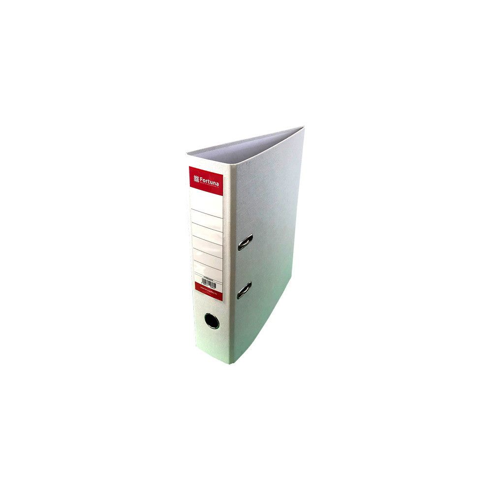 A Fortuna A/4-es, 75 mm gerincszélességű iratrendező megbízható társ az irodai és otthoni dokumentumkezelésben. Erős kartonmagját kívül tartós műanyag bevonat, belül sima papírborítás védi, így a mappa egyszerre stabil és esztétikus. A masszív, karos kétkapcsos mechanika fém leszorítóval gondoskodik az iratok biztos rögzítéséről, míg a gerincre hegesztett, cserélhető címketartó segít az átlátható rendszerezésben. A praktikus kihúzógyűrűnek köszönhetően a rendező könnyedén leemelhető a polcról.