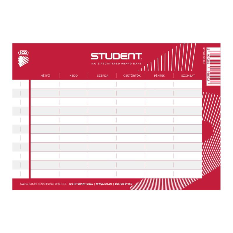 A Student az ICO saját márkája. Az ICO Magyarország és Közép-Kelet-Európa legnagyobb író- és irodaszergyártója 1951 óta. Az elsődleges szempont a kiváló minőség, melynek garanciája a több mint 65 éves, gyártásban elért tapasztalat, a legkorszerűbb gyártási technológiák és a szigorú minőségellenőrzés.