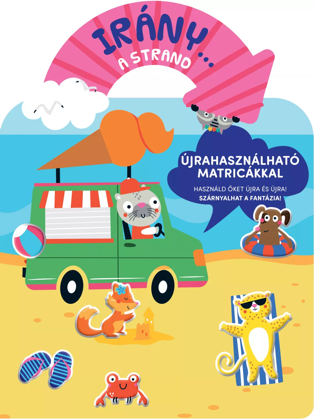 Irány… a strand – ez a bájos, újrahasználható matricás könyv pillanatok alatt tengeri kalanddá változtatja a nappalit. A vastag, strapabíró lapokon tarka állatfigurák és strandkellékek várják, hogy a gyerekek újra és újra átrendezzék őket, így a történet sosem lesz kétszer ugyanaz. A különleges, vinyl alapú matricák nem hagynak nyomot, mégis erősen tapadnak, ezért ideálisak kezdő kis mesemondóknak, akik játék közben szárnyalhatják a fantáziájukat.