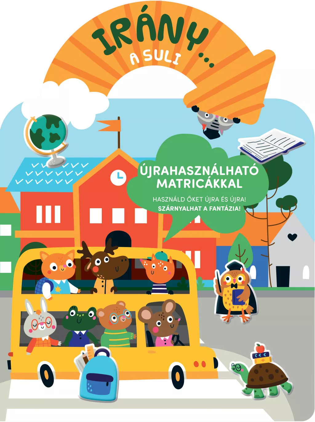Irány… a suli matricás könyv vidám bevezetőt kínál az iskolakezdéshez. A vastag, matt felületű lapokon eleven színekkel illusztrált iskolajelenetek várják, hogy a gyerekek újra és újra átrendezzék őket a könnyedén lehúzható, többször felragasztható matricákkal. A szereplők, járművek és tantermi kellékek szabad mozgatása közben fejlődik a finommotorika, a fantázia és a történetmesélő kedv, miközben a kicsik játékosan ismerkednek meg egy iskolai nap főbb állomásaival.