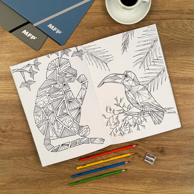 Az MFP Felnőtt Színező A/4 32 Lapos – Állatok 2 egy igényes, A4-es méretű színezőfüzet, amely 32 különleges, geometrikus motívumokkal díszített állatportrét kínál. A finom, aprólékosan kidolgozott vonalak hosszú órákra lekötik a figyelmet, miközben a színezés megnyugtató, stresszoldó élménnyé válik. A minőségi, sima papír a színes ceruzát, vékony filcet és zseléstollat is jól fogadja, így bátran kísérletezhetsz kontrasztos vagy pasztell árnyalatokkal, és egyedi, látványos alkotásokat hozhatsz létre.