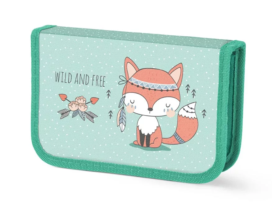 A MFP klapnis, töltetlen tolltartó játékos rókamotívuma azonnal mosolyt csal az iskolapadba. A kihajtható belső rész kényelmes áttekinthetőséget biztosít, így a gyerkőc gyorsan megtalálja kedvenc ceruzáját. Kompakt kialakítása mellett mindössze 0,15 kg-ot nyom, ezért a táska súlyát sem terheli meg. A "Wild and Free" felirat inspiráló hangulatot csempész a mindennapokba, miközben rendezett keretek között tartja az írószereket.
