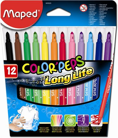 Filctoll készlet, 1-5 mm, kimosható, Maped Colorpeps, 12 különböző szín.
