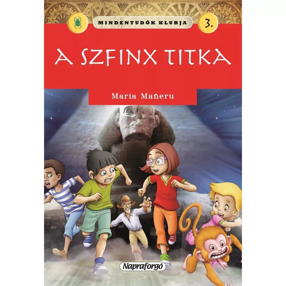 Mária Mañeru izgalmas sorozatának harmadik kötete, a „Mindentudók klubja 3. – A szfinx titka” Egyiptomba és Párizsba repíti az olvasót: a régész szülők nyomában járó három testvér a kairói bazárban bukkan egy látszólag hétköznapi szuvenírre, amely ősi legendákat éleszt fel és veszélyes versenyfutást indít az idővel. A színes illusztrációkkal tarkított, strapabíró puhakötésű könyv játékosan tanít a régészet, a történelem és a kultúrák találkozásáról, miközben letehetetlen kalandregényt kínál a 8–12 éves korosztálynak.