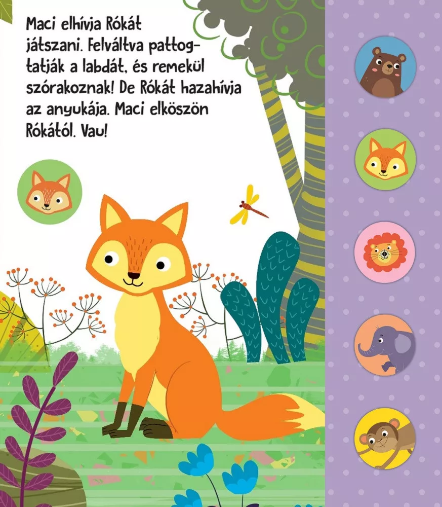 • A könyv szélén található gombok megnyomásával aktiváld az adott állathangot.