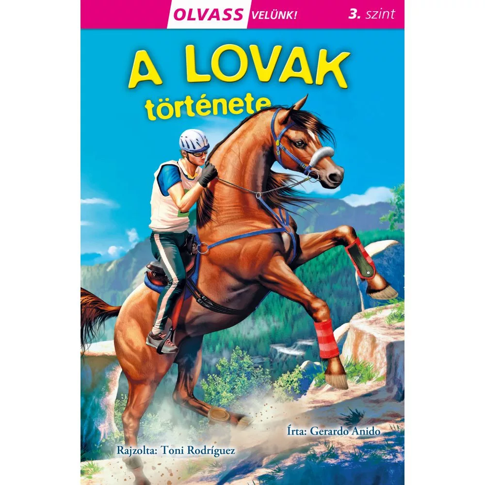 Az Olvass velünk! sorozat harmadik szintjének „A lovak története” című kötete lebilincselő kalandra hívja a 7-9 éves, már magabiztosan szótagoló kis olvasókat. A lendületes, színes illusztrációk Toni Rodríguez rajzaival segítik a megértést, míg Gerardo Anido közérthető, izgalmas szövege végigvezeti az olvasót a ló és az ember több ezer éves közös útján. Puhafedeles, könnyű (mindössze 230 g), strapabíró, ofszetnyomott papírra készült kötet, amely egyszerre bővíti a szókincset és életre kelti a történelem négy patájú hőseit.