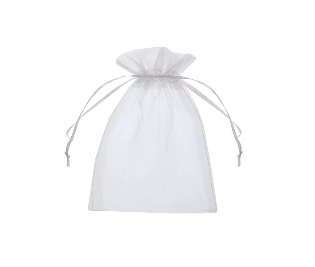 A fehér, lágy színű organza tasak ideális választás apró ajándékok vagy ékszerek elegáns csomagolásához. Az áttetsző anyag gyönyörűen felfedi a tartalmat, míg a húzózsinór biztosítja a könnyű és biztonságos zárást. A tasak könnyű, szellős és fényűzőnek tűnik, így tökéletes esküvőkre, születésnapokra, ünnepségekre és apró kincseinek mindennapi tárolására.