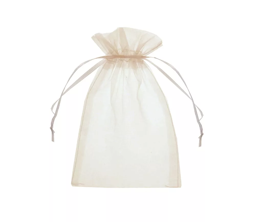A krém, lágy színű organza tasak ideális választás apró ajándékok vagy ékszerek elegáns csomagolásához. Az áttetsző anyag gyönyörűen felfedi a tartalmat, míg a húzózsinór biztosítja a könnyű és biztonságos zárást. A tasak könnyű, szellős és fényűzőnek tűnik, így tökéletes esküvőkre, születésnapokra, ünnepségekre és apró kincseinek mindennapi tárolására.
