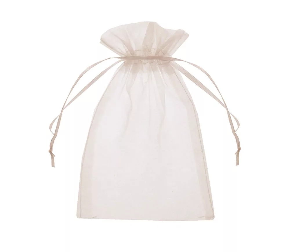 A krém, lágy színű organza tasak ideális választás apró ajándékok vagy ékszerek elegáns csomagolásához. Az áttetsző anyag gyönyörűen felfedi a tartalmat, míg a húzózsinór biztosítja a könnyű és biztonságos zárást. A tasak könnyű, szellős és fényűzőnek tűnik, így tökéletes esküvőkre, születésnapokra, ünnepségekre és apró kincseinek mindennapi tárolására.