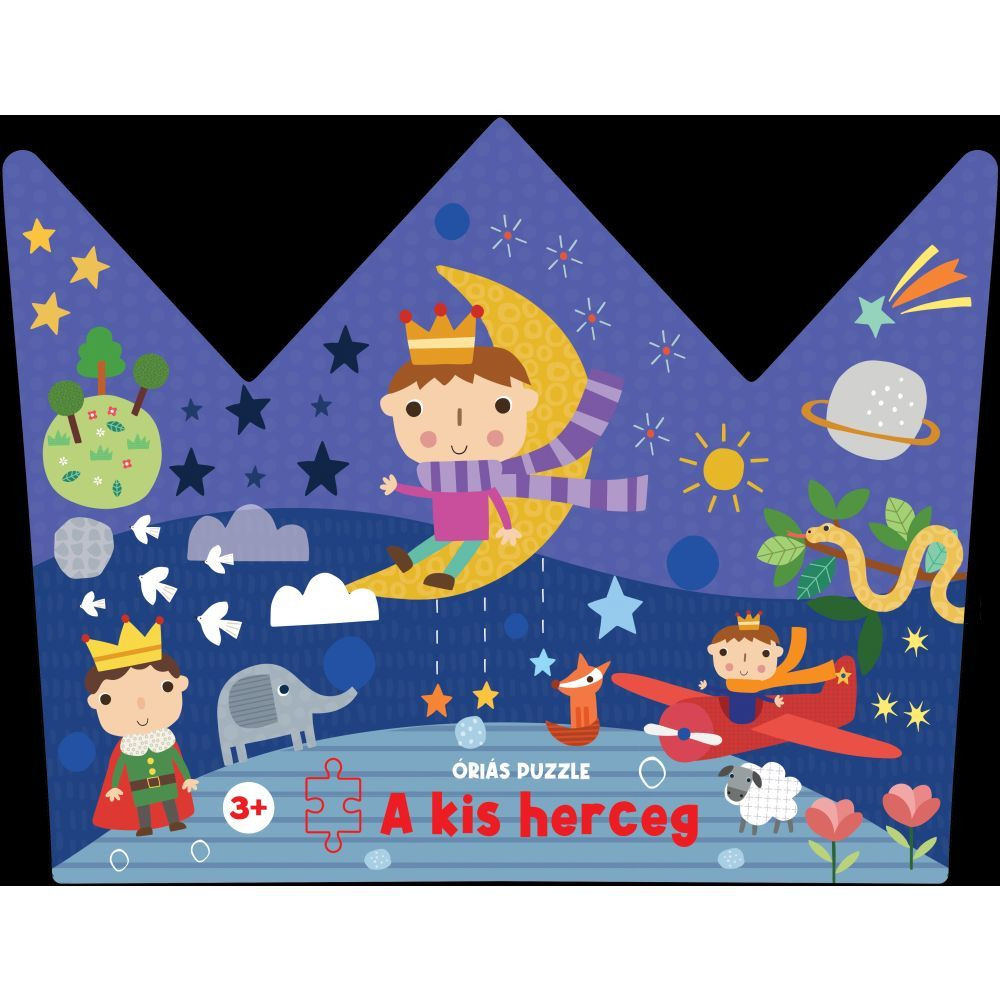 Az Óriás puzzle – A kis herceg egy nagyméretű, vastag kartonból készült kirakó, amely a klasszikus történet kedves, modern illusztrációival fejleszti a gyerekek kézügyességét és megfigyelőképességét. A masszív elemeket könnyű megfogni és illeszteni, így a legkisebbeknek is sikerélményt ad, miközben életre kelti a mese varázslatos világát. A közös építés egyszerre játék és tanulás, inspiráló bevezetés a kirakók színes univerzumába.