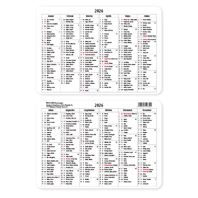 PD Kártyanaptár 7x10 cm 2026 Sima