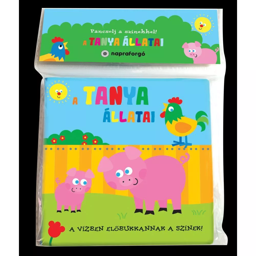 A "Pancsolj a színekkel! – A tanya állatai" egy vízre érzékeny pancsoló könyvecske, amely játékosan mutatja be a legkedvesebb tanyasi állatokat. A puha, PVC-mentes lapok első pillantásra fekete-fehérnek tűnnek, ám amint víz éri őket, előbújnak a vidám színek, majd száradás után újra eltűnnek, hogy a felfedezés kezdődhessen elölről. Könnyű, strapabíró kiegészítő a fürdetéshez, amely egyszerre fejleszti a színfelismerést és mesél a baromfiudvar lakóiról.