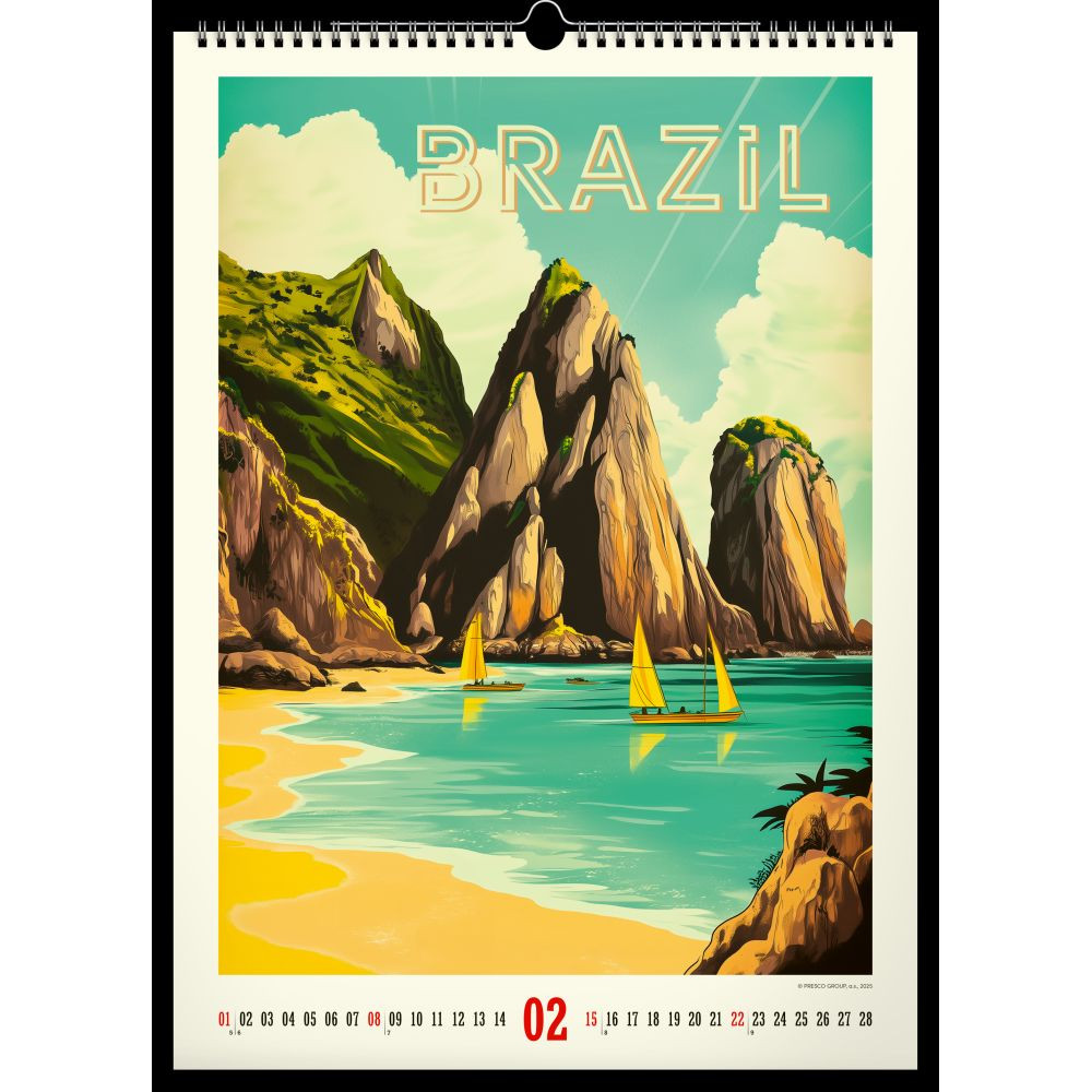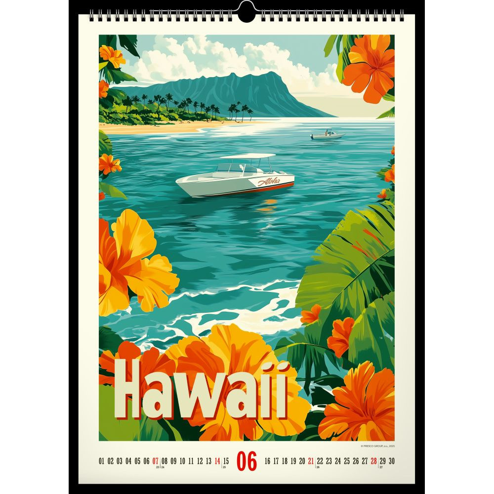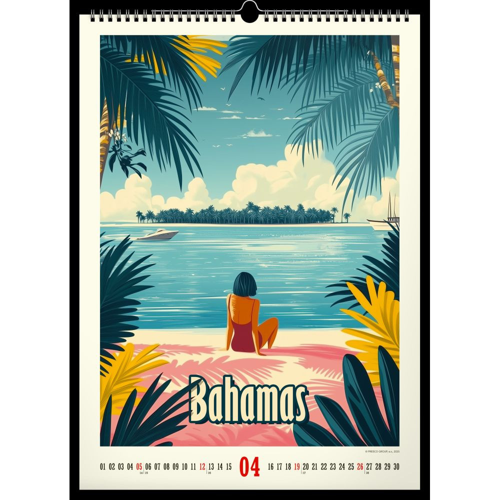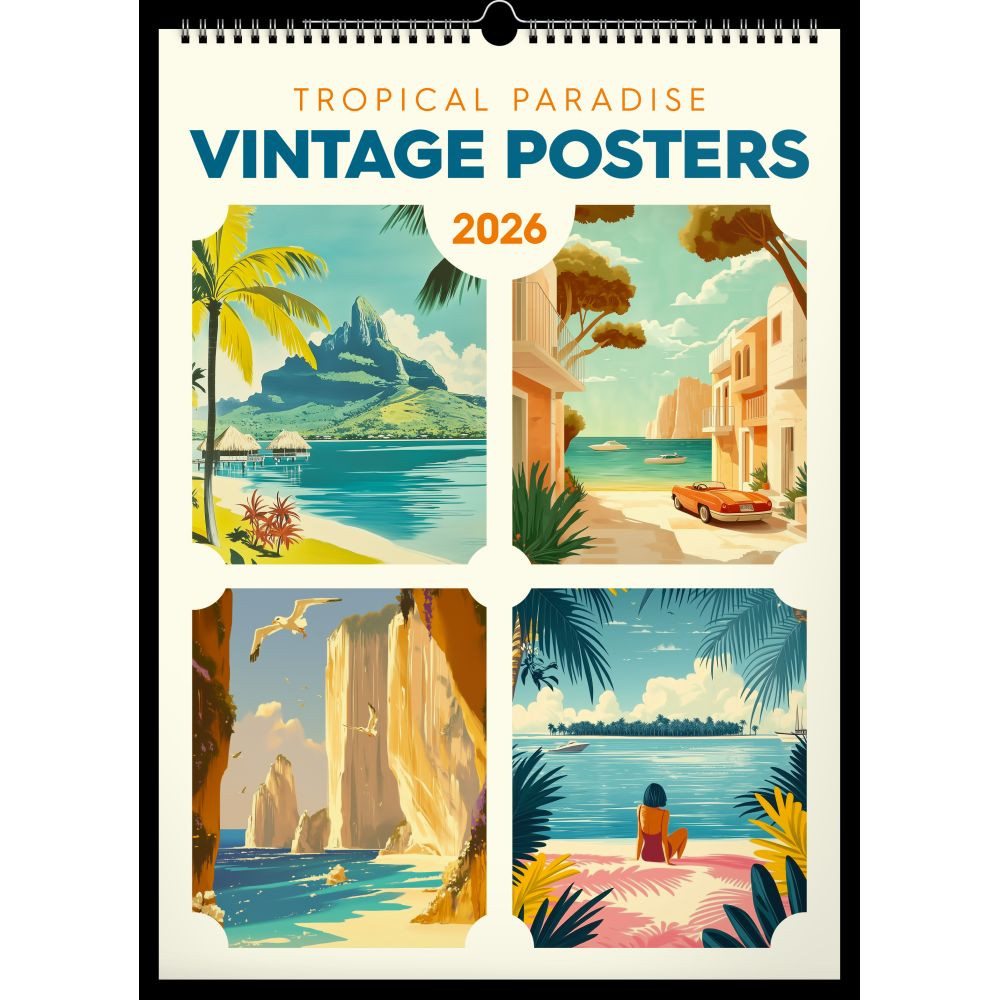 Az 33×46 cm-es Realsystem Tropical Paradise 2026 falinaptár a vintage plakátok hangulatát idéző, élénk trópusi illusztrációkat hoz otthonodba vagy irodádba. Vastag, jó tartású műnyomó papírra készül, a képeket felső fém ikerspirál és középső akasztó rögzíti, így a naptár stabilan, gyűrődés nélkül lóg. A nagy méretű, áttekinthető hónaprács bőséges helyet kínál határidők, családi programok és születésnapok bejegyzésére. Egy pillantás, és máris a pálmafák árnyékában érzed magad.