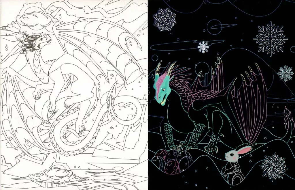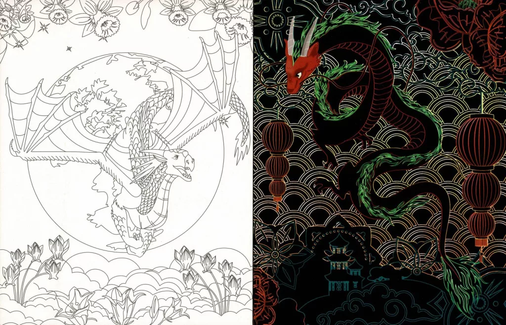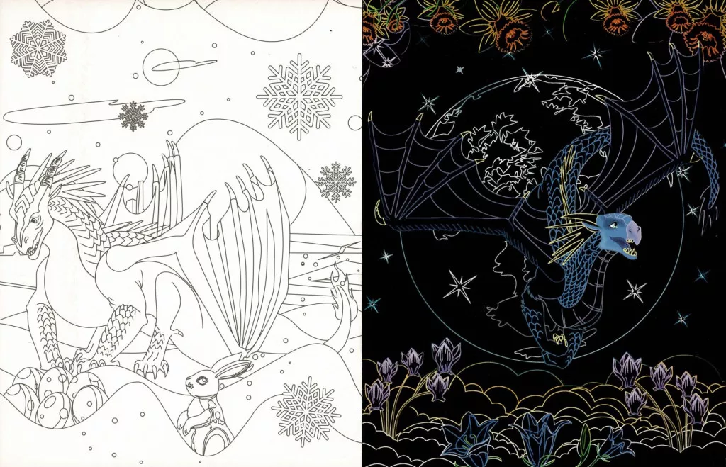 Rejtőzködő sárkányok Kifestőfüzet kaparós és színezős oldalakkal