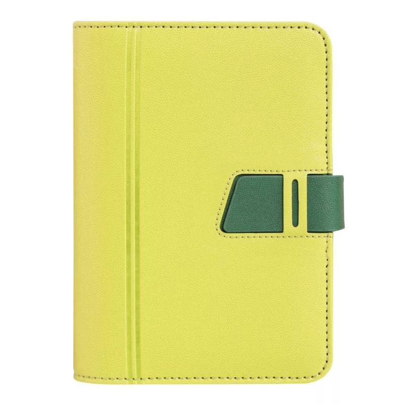 Vidám színvariációkban készült, bedugófüllel záródó műbőr kalendárium. Szitázással, présfólia- és vaknyomással emblémázható.