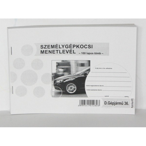 Személygépjármű Menetlevél A/5 100 Lapos Fekvő D.GÉPJ.36