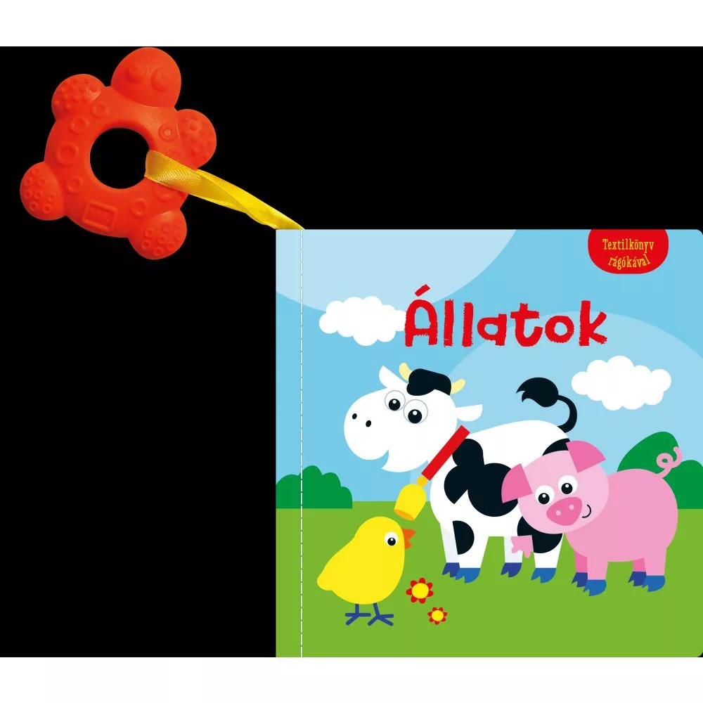 A Textilkönyv rágókával – Állatok egy vidám, puha lapozgató a legkisebbeknek. A könnyű, textilborítású oldalak élénk, kontrasztos állatfigurákat rejtenek, amelyek csörgő-zörgő hanggal ösztönzik a tapintást és a felfedezést. A könyvhöz varrt, virág alakú rágóka megnyugtatja a fogzó babát, így a játék olvasnivalóval és rágási lehetőséggel is szolgál. A kis tömegű, hordozható füzet babakocsira vagy táskára akasztva séta közben is kéznél van.