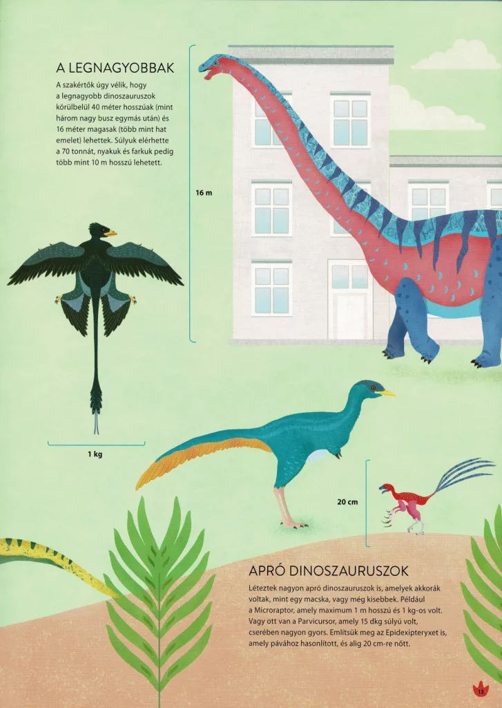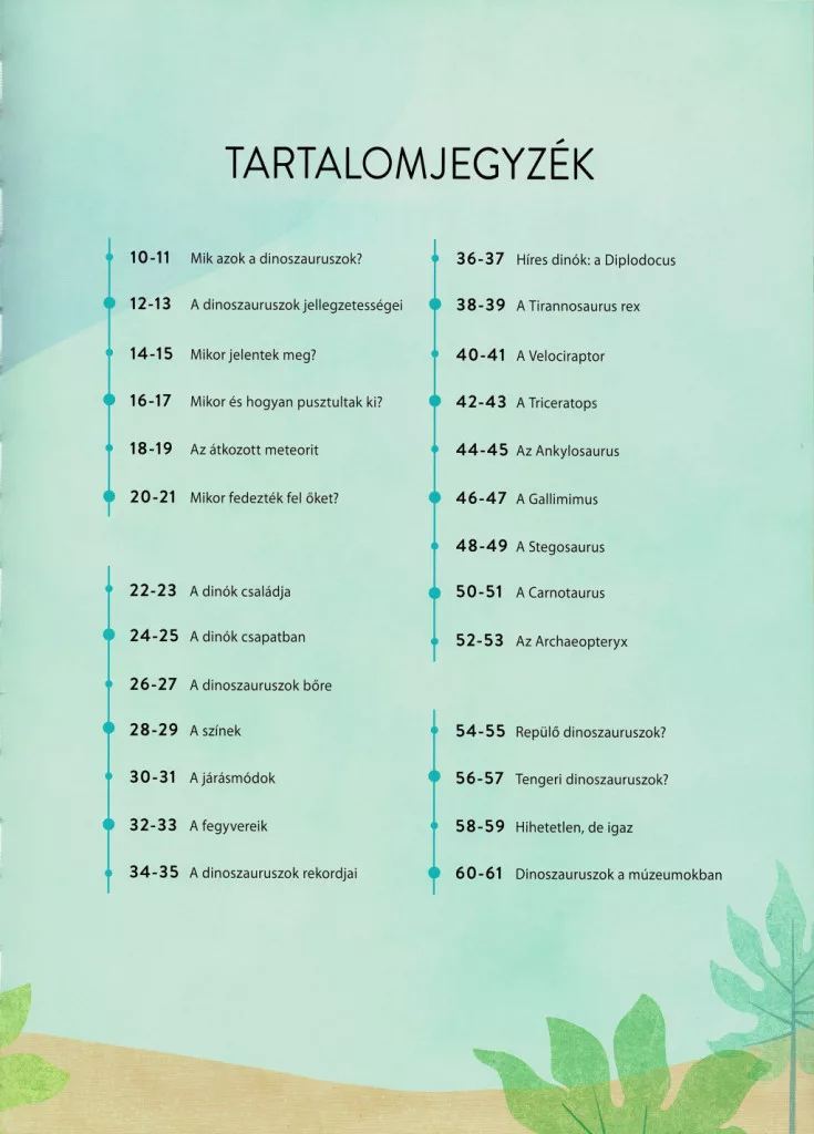 A könyv olvasmányos stílusban, könnyen érthető szakkifejezésekkel vezeti végig az olvasót a dinoszauruszok lenyűgöző világán. A nagy méretű, részletgazdag képek révén már a fiatalabb, általános iskolás korosztály is élvezettel forgathatja, miközben a felnőttek számára is hiteles tudományos háttéranyagot nyújt. Használata egyszerű: csak lapozd fel, és máris időutazáson vehetsz részt. Nehézségi szintje: könnyű. Ajánlott minden dinoszaurusz-rajongó kezdő és haladó olvasónak.