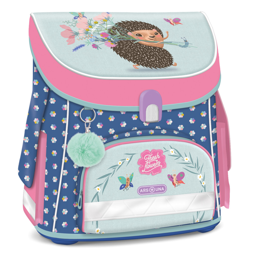 Az Ars Una Kompakt Easy "Fresh Flowers" mágneszáras iskolatáska (5524) egy könnyű, mindössze 1,22 kg-os hátizsák, amelyet alsó tagozatos diákok igényeihez terveztek. Merev, mégis kényelmes formája stabilan tartja a tankönyveket, a virágmintás, sünis fedél pedig vidám hangulatot visz a mindennapokba. Tartós poliészter borítása ellenáll a mindennapi használatnak, a modern mágnescsat pedig egyetlen mozdulattal nyitható-zárható. A természetközeli grafika kreativitásra és felfedezésre ösztönzi a gyerekeket.