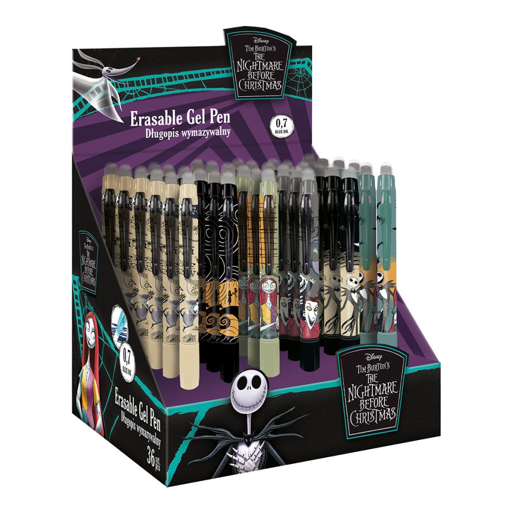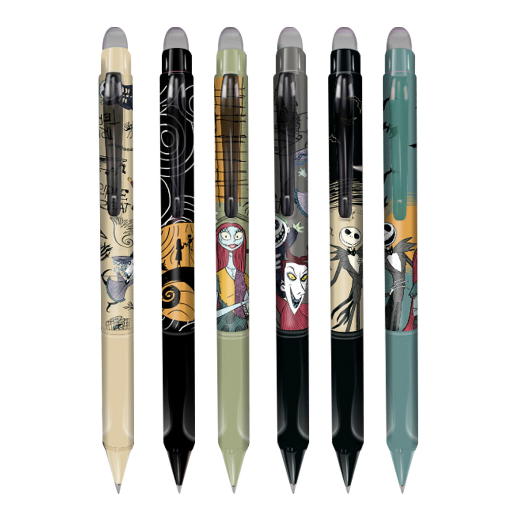 Ez a vékonyhegyű, radírozható golyóstoll a Colorino Tim Burton kollekció része, így a tolltestet a Karácsonyi lidércnyomás ikonikus figurái díszítik. A műanyag házhoz puha, háromszög alakú, csúszásgátló gumifogó társul, amely hosszabb írás közben is kényelmes. Hőre eltűnő tintája a kupak végén lévő speciális radírral nyomtalanul korrigálható, majd újraírható, így tökéletes iskolai jegyzetekhez, határidőnaplóhoz vagy gyors vázlatokhoz.