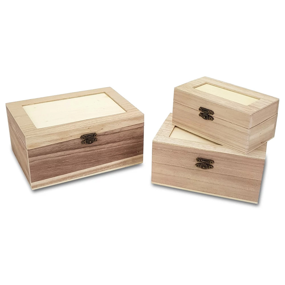 • 3 × natúr fa doboz peremes fedéllel (kisméretű, közepes, nagyméretű)
