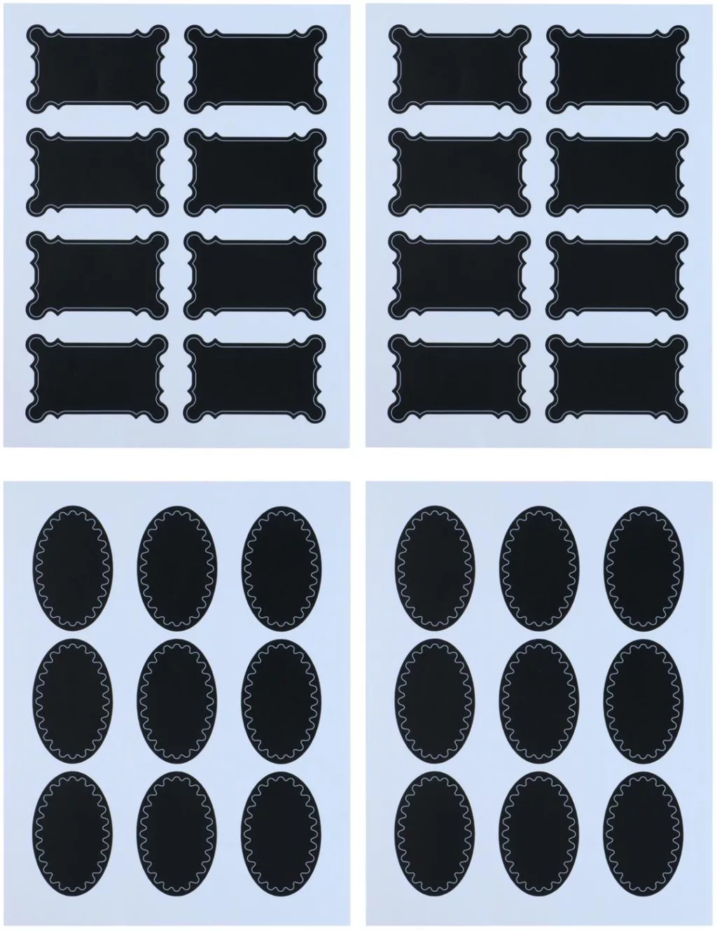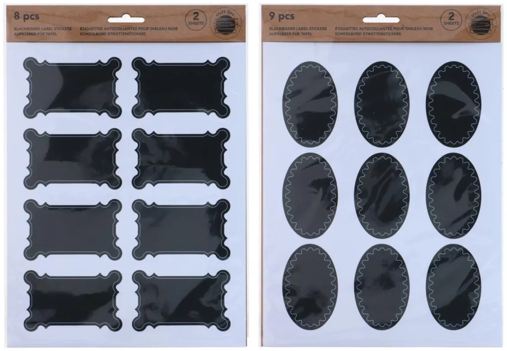 A különböző – ovális és díszes keretes téglalap – formák egyszerre teszik változatossá és mégis összehangolhatóvá a rendszerezést. A fekete háttéren jól látszanak a világos tinta- vagy krétajelölések, így már távolról is könnyű felismerni a tartalmat. Az öntapadó hordozó erősen tapad üvegre, műanyagra, fémre, mégis nyom nélkül eltávolítható, ha változik a felirat. Kezdőknek is könnyű használat: lehúz, felragaszt, felír – kész. Haladók kreatív scrapbooking- vagy partydekor-projektekhez is bátran bevethetik. Ajánlott 6 éves kortól, felnőtteknek is.