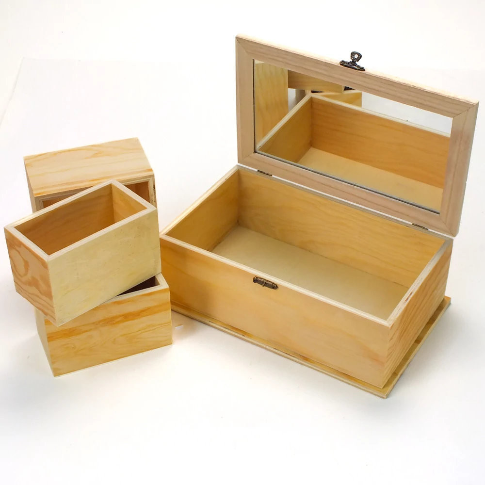 • 1 db natúr fa ékszertartó doboz beépített tükörrel