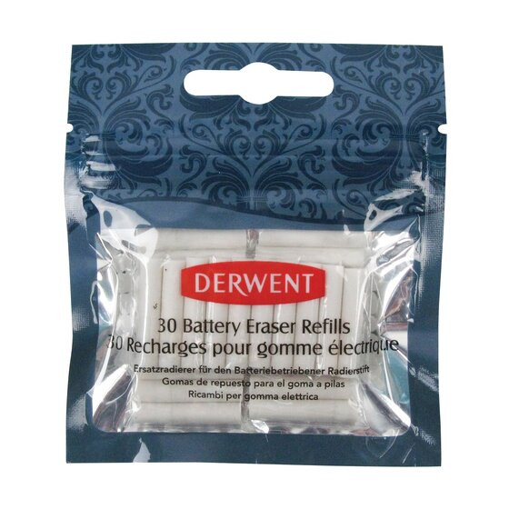 A Derwent Elektromos Radír Pótfej 30 darabos csomag a Derwent elemes radírhoz készült eredeti cserebetét-készlet. A fehér, finomszemcsés radírgumi kíméletes a papírhoz, mégis határozottan és nyom nélkül távolítja el a grafit-, színesceruza- vagy szénnyomot. A hengeralakú betétek pontosan illeszkednek a készülék patronjába, így a gyors, precíz korrekció mellett akár fény- és textúrakiemelő effektusok létrehozása is lehetséges – ideális részletgazdag rajzok életre keltéséhez.
