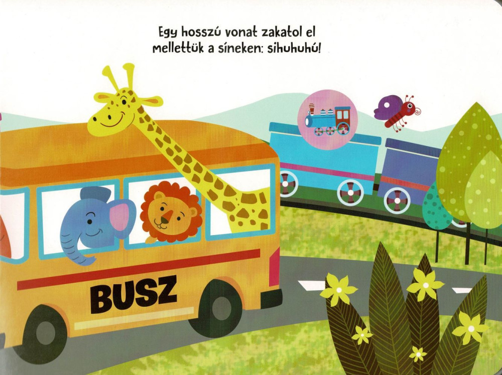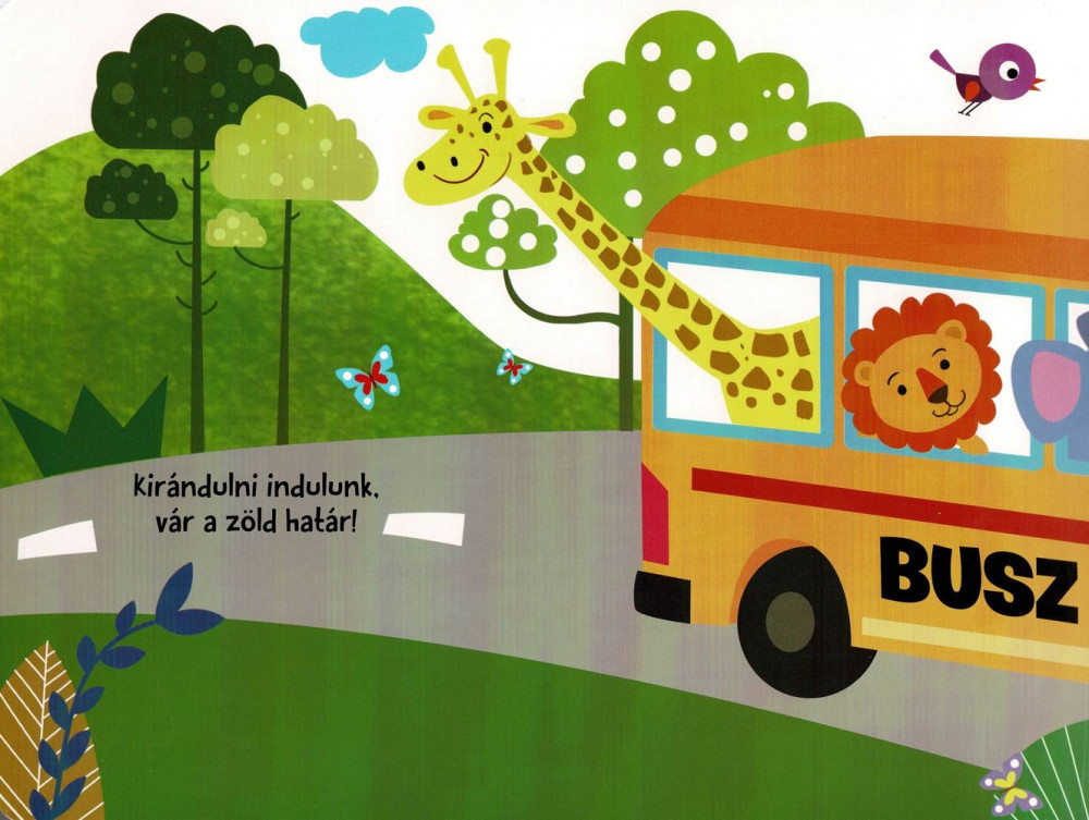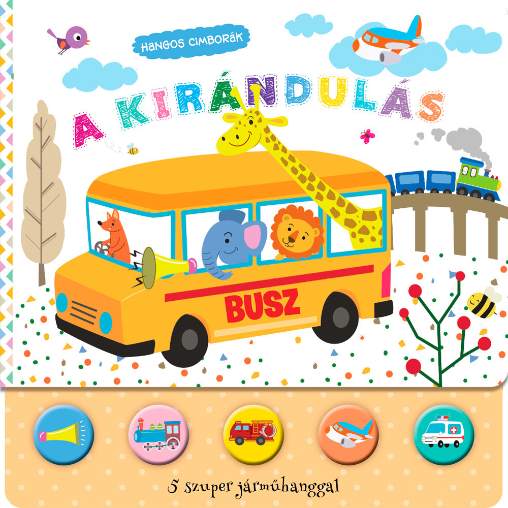 A Hangos Cimborák – A kirándulás egy strapabíró keménykarton lapozó, amelyben a gyerekek öt különféle járművel és azok hangjával ismerkedhetnek meg. A beépített elektronikának köszönhetően minden oldalpárhoz tartozik egy gomb, amelyet megnyomva azonnal megszólal a busz, a vonat, a tűzoltóautó, a repülőgép vagy a mentő szirénája. A színes, kedves illusztrációk és az élethű effektek játékosan támogatják a szókincs bővítését és a hallási figyelem fejlődését.