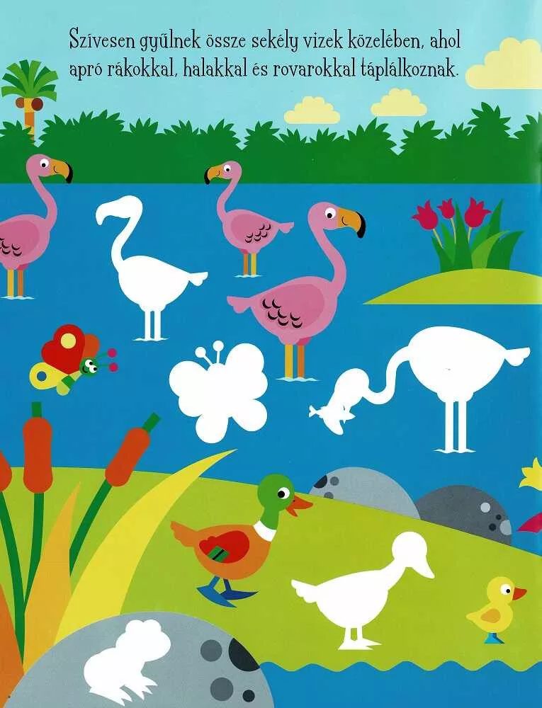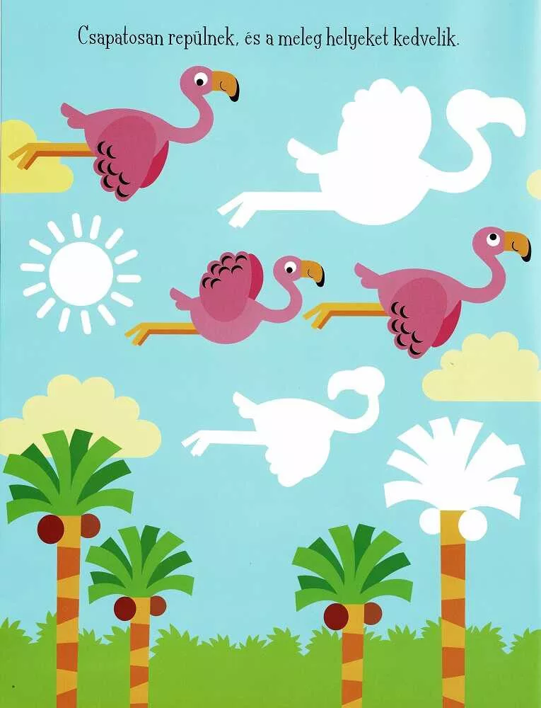 • A flamingó-téma vidám színvilága és a változatos jelenetek ötleteket adnak saját rajzok, mesék vagy képeslapok készítéséhez.