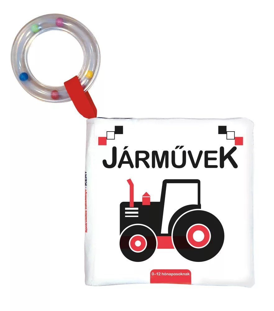 A Kontrasztos babakönyv – Járművek egy könnyű (mindössze 60 g), puha lapozó, amelyet kifejezetten az újszülöttek korlátozott színlátásához terveztek. A fekete–fehér–piros, nagy kontrasztú grafikák és a letisztult jármű-formák segítik a szem fókuszálását, serkentik a látásélességet és lekötik a baba figyelmét otthon, útközben vagy akár a babakocsiban lógva.