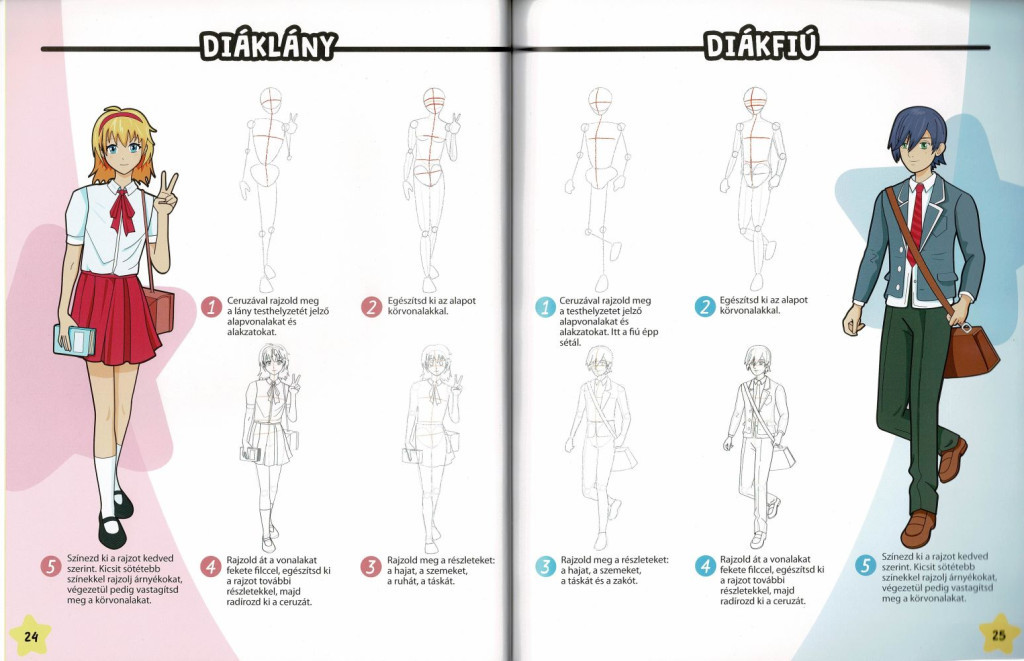 • 1 db "Manga Karakterek Sónen és Sódzso Stílusban" rajzoktató könyv