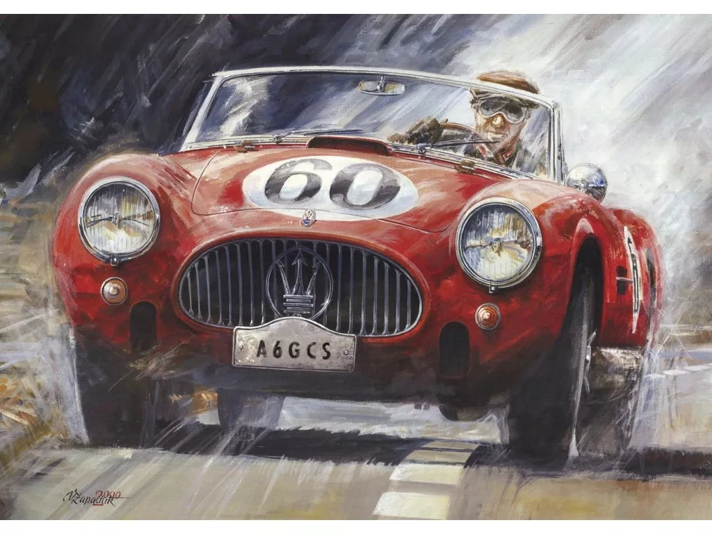 A Mapcards 3D Képeslap A/6 Fekvő Maserati 1954 egy látványos, térhatású képeslap, amelyen a legendás piros Maserati A6GCS 1954-es versenyautó száguld elénk. A standard A6-os (148×105 mm) méretű kartonlap különleges 3D felületkezelést kapott, így a festményszerű jelenet mozgásba lendül, ahogy a lapot döntögetjük. Könnyedén postázható, ugyanakkor akár mini poszterként is keretbe foglalható – stílusos dísz minden autórajongó otthonában.
