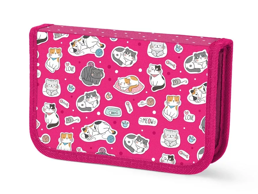 A játékos cicamintákkal díszített, kihajtható tolltartó praktikus társ az iskolában és otthon: átlátható rekeszeiben rendezetten elférnek a tollak, ceruzák, radírok, így minden kéznél lesz a tanórák vagy a rajzolás során. A klapnis kialakítás gyors hozzáférést enged, a kompakt, mindössze 150 g tömegű tartó pedig könnyedén elfér az iskolatáskában. Könnyed, vidám dizájnja alkotásra és jegyzetelésre inspirál.