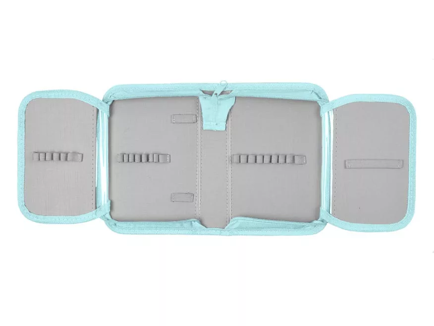 • Praktikus klapnis belső elrendezése gumipántokkal segít, hogy a ceruzák, tollak, radírok stabilan a helyükön maradjanak.