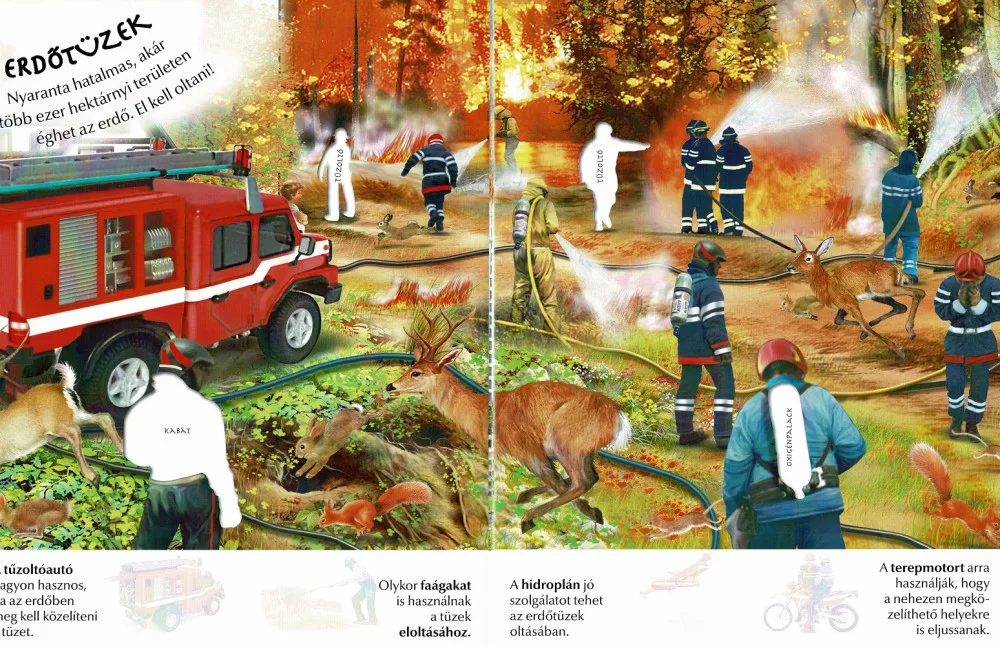 A "Milyen érdekes a világ – Tűzoltók" című ismeretterjesztő, matricás foglalkoztató könyv játékos módon mutatja be a tűzoltók bátor munkáját, járműveit és felszereléseit. A gazdagon illusztrált oldalakhoz több mint 50 újraragasztható matrica tartozik, amelyekkel a gyerekek interaktívan egészíthetik ki a jeleneteket, miközben hasznos tudnivalókat sajátítanak el a tűzvédelemről. A puhafedeles, színes kiadvány ideális otthoni böngészéshez, utazáshoz vagy óvodai–iskolai foglalkozásokhoz.