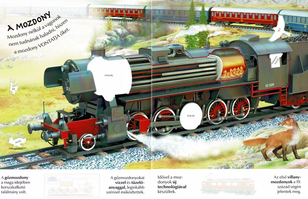 • Fedezd fel újra a kötetet: keresd meg, melyik vonat melyik korszakhoz tartozik.
