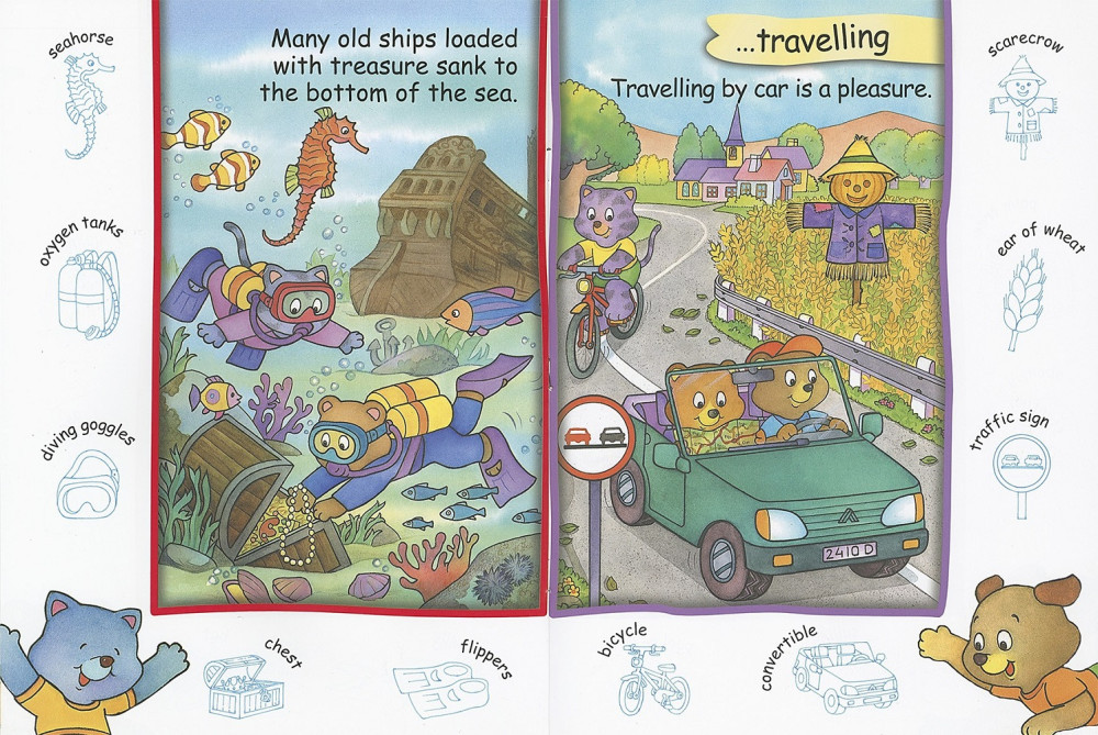 A „My first 100 words with animals – My world” egy vidám, matricákkal kiegészített angol nyelvű képes szókincsfejlesztő könyv, amely játékosan vezeti be a legkisebbeket az első 100 alapvető szó – köztük állatnevek és mindennapi tárgyak – világába. Színes illusztrációi és a 120 darab újraragasztható matrica segíti a látványos tanulást, miközben a gyerekek önállóan vagy szülői támogatással is felfedezhetik az angol szavak hangzását és jelentését.