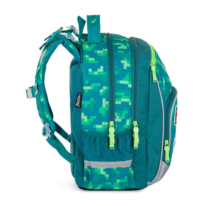 Az OXY GO Iskolatáska Playworld egy mindössze 0,95 kg súlyú, strapabíró hátizsák, amelyet kifejezetten általános iskolások mindennapos terheléséhez terveztek. Vízlepergető poliészter anyaga védi a tankönyveket, füzeteket, míg a vagány, pixeles játékvilág-mintázat vidám megjelenést ad. Több cipzáras rekesz, elülső gyorszseb és kulacstartó oldalzseb gondoskodik a rendszerezésről, párnázott hátkialakítása és állítható vállpántjai pedig egész nap kényelmes viseletet biztosítanak.
