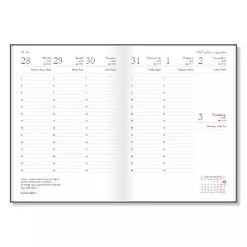 A zsebkönyv praktikus eszköz mind kezdő, mind gyakorlott tanároknak: használata egyszerű, gyors áttekintést ad a heti és havi feladatokról. A keményfedeles, műbőr borítás kényelmes fogást biztosít, még a sűrűn használt iskolai környezetben is ellenáll a mindennapos igénybevételnek. A heti bontás mellett plusz jegyzetoldalak kaptak helyet, hogy a hirtelen felmerülő ötletek, feladatok se vesszenek el. Ajánlott minden pedagógusnak, aki 2026 szeptemberétől 2027 júniusáig rendszerezett, stresszmentes tanévre vágyik.