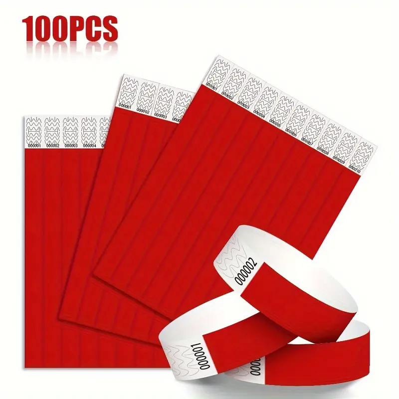 Egyszerű a résztvevők azonosítása ezzel a víz- és izzadságálló, sorszámozott piros karszalaggal. A 25×1,9 cm-es, tépésbiztos Tyvek szalag öntapadósan zár, sérülés nélkül nem távolítható el, a 100 darabos csomag gyors, biztonságos beléptetést kínál egész napos rendezvényeken.
