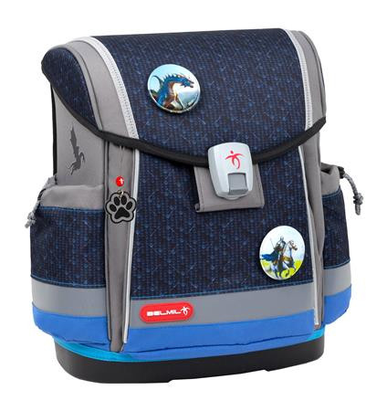 A Belmil Merevfalú Iskolatáska Classy Plus 405-78/AG „World of Dragon” könnyű (1,033 kg), mégis masszív iskolatáska vízálló poliészterből. 36 × 32 × 19 cm-es méretében 19 literes, jól tagolt belső tér kapott helyet, amelyben az A4-es könyvek, füzetek és kiegészítők rendezett helyet találnak. Ergonomikus, AGR-tanúsított hátkiképzése légáteresztő párnázással óvja a gerincet; az S-alakú, puhított vállpántok és a levehető mellpánt optimális súlyelosztást biztosítanak. A német Fidlock „Push” mágneszár villámgyors, egykezes nyitást–zárást tesz lehetővé, míg a cserélhető Dragon patches díszítés játékosan személyre szabhatóvá teszi a táskát.