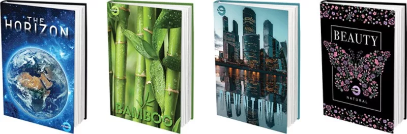 • Borító: vegyes minták (űr, bambusz, város, pillangó)